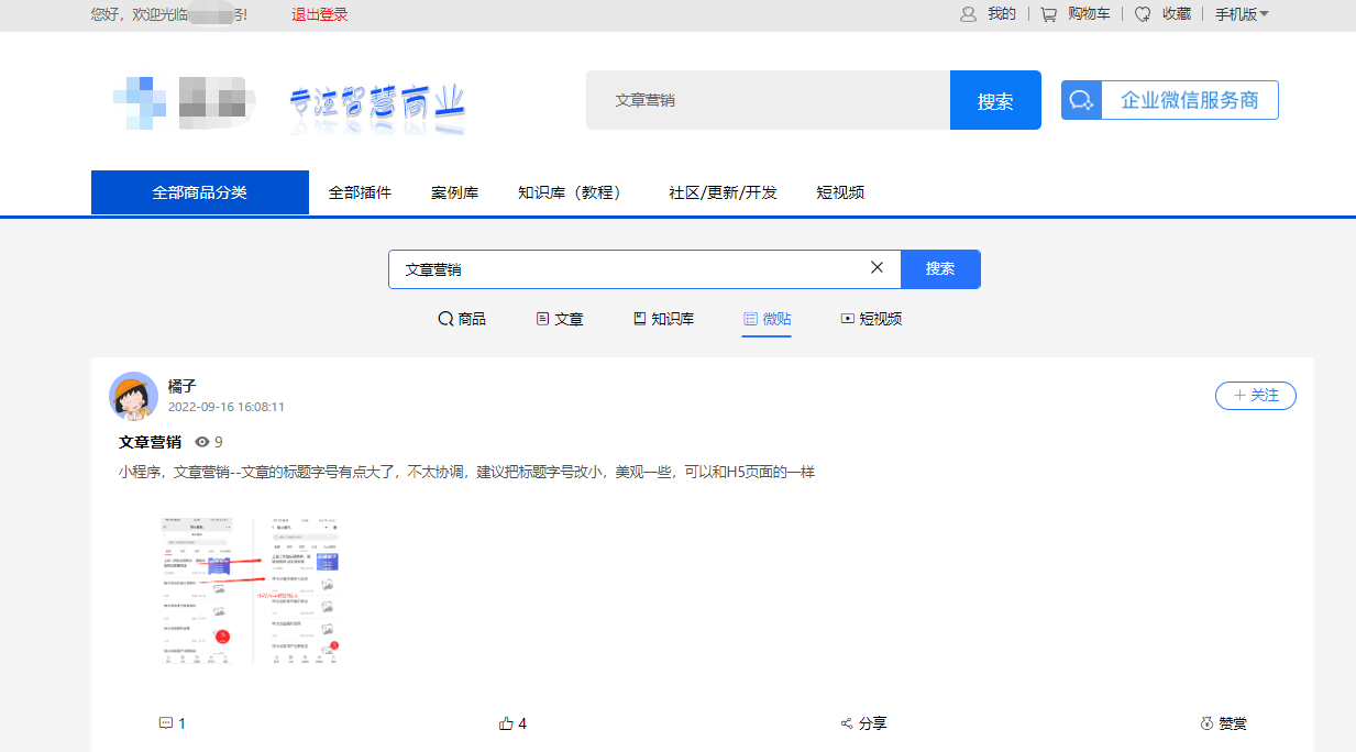 2、关闭原模块搜索:当前仅支持知识库和微社区,勾选后,原模块中的独立搜索框将不再显示。