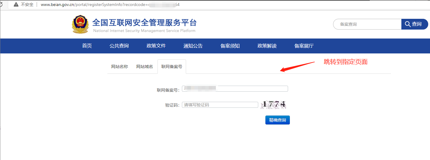 如果想要跳转到具体粤公网安备查询,格式如下: